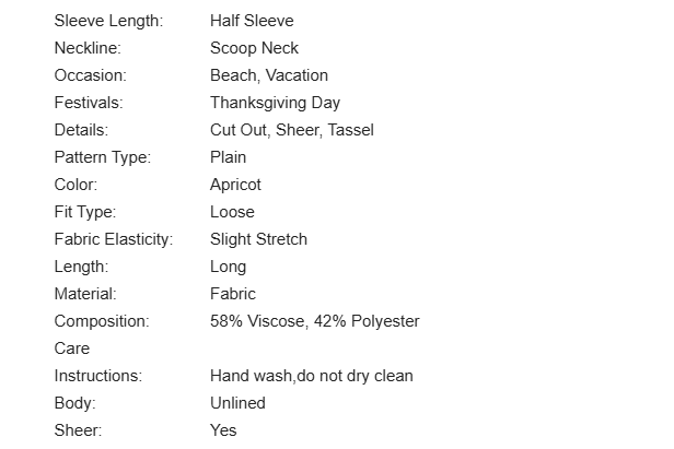 112 cm, Shoulder: 55 cm, Sleeve Length.22 cm, Length: 91 cm.