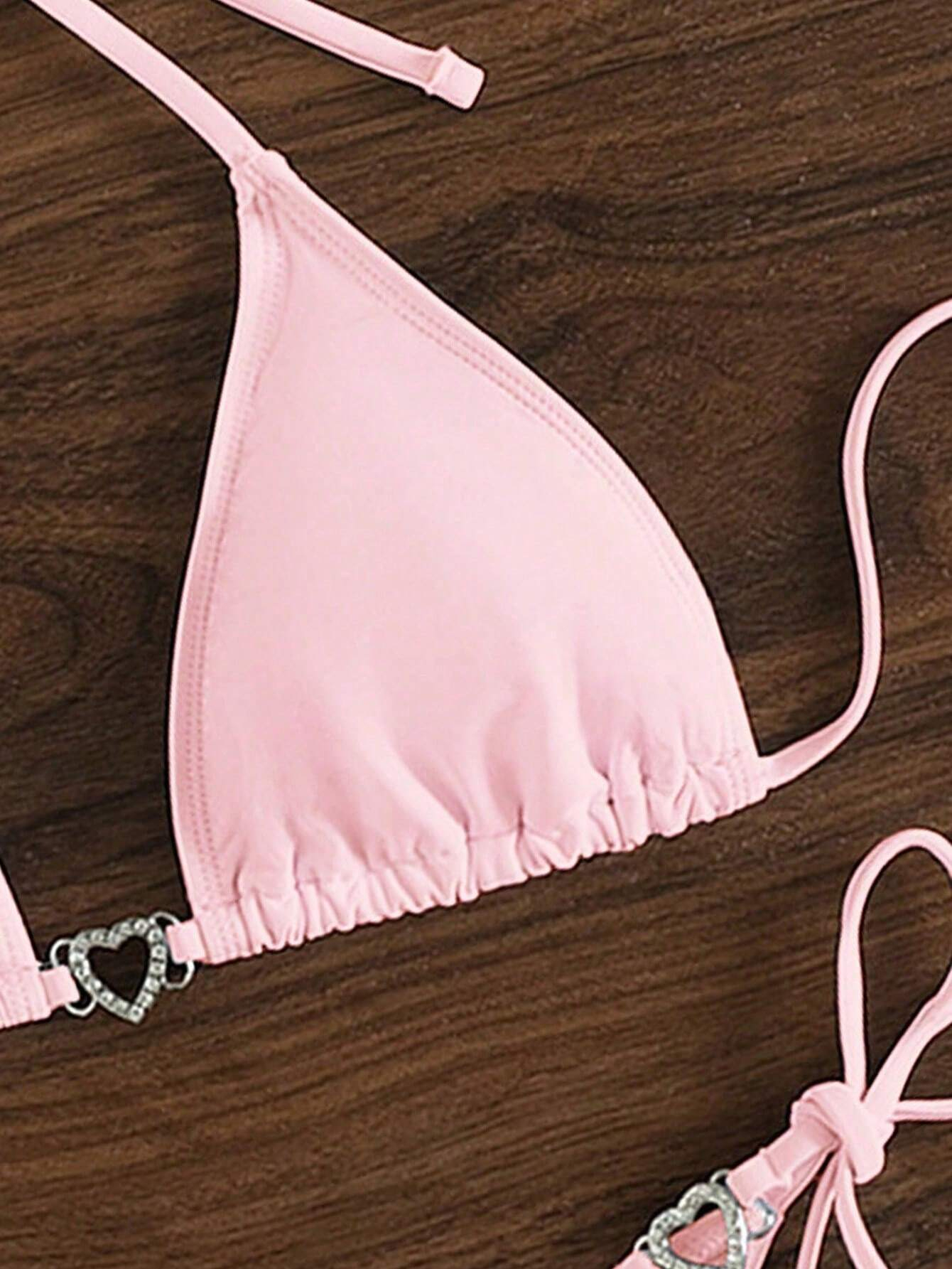 Summer Beach Rhinestone Decor Halter Triangle Bikini